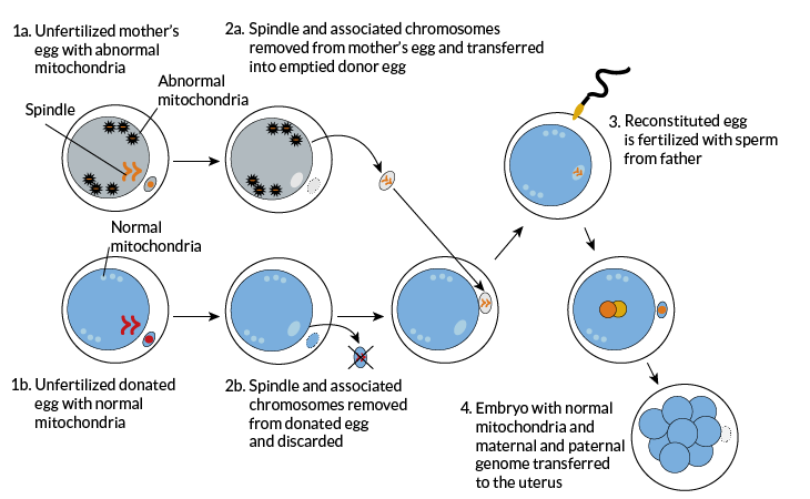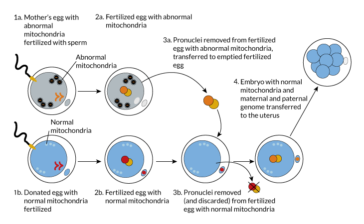 Básicamente la técnica consiste en tener el ovulo de dos mujeres, la madre y la donante. La madre tiene las mitocondrias mal, y para ello se va a extraer el núcleo del ovulo de la madre que es donde se encuentra la mayor parte del ADN, y dicho núcleo se va a implantar en el de la donante, habiendo sacado previamente el núcleo de la donante.